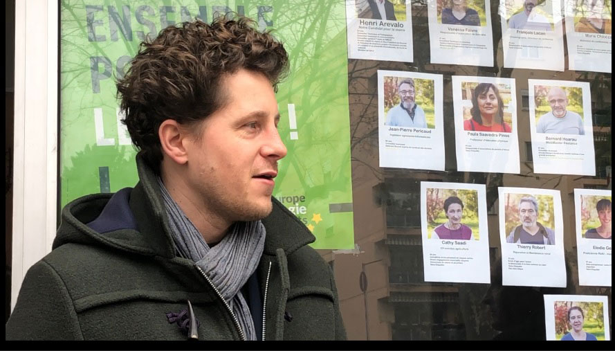 Présentation de la liste Ramonville Ecologie 2020, pour les élections municipales, en présence de julien Bayou, secrétaire national de EELV. Devant notre local : 10 avenue d’Occitanie