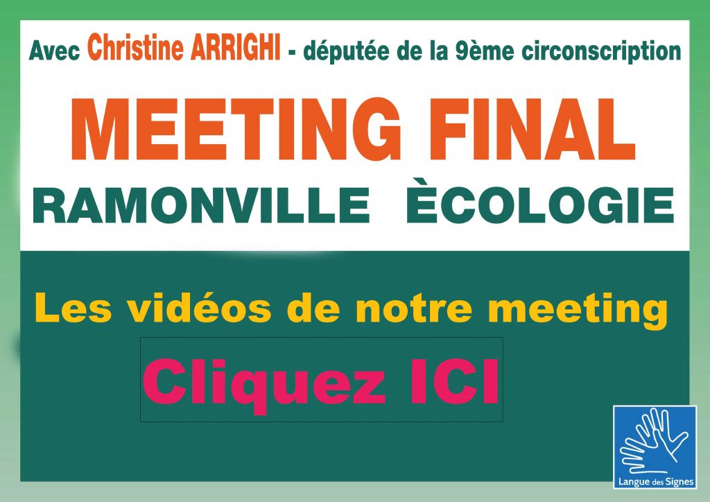 Lors du meeting de la liste Ramonville Ecologie, pour les élections municipales et communautaires de Ramonville , Christine ARRIGHI nous a présenté sa vision de l’impact du national sur les Elections locales. Elle nous a fait un bilan des actions qu’elle a menées à l’Assemblée Nationale.